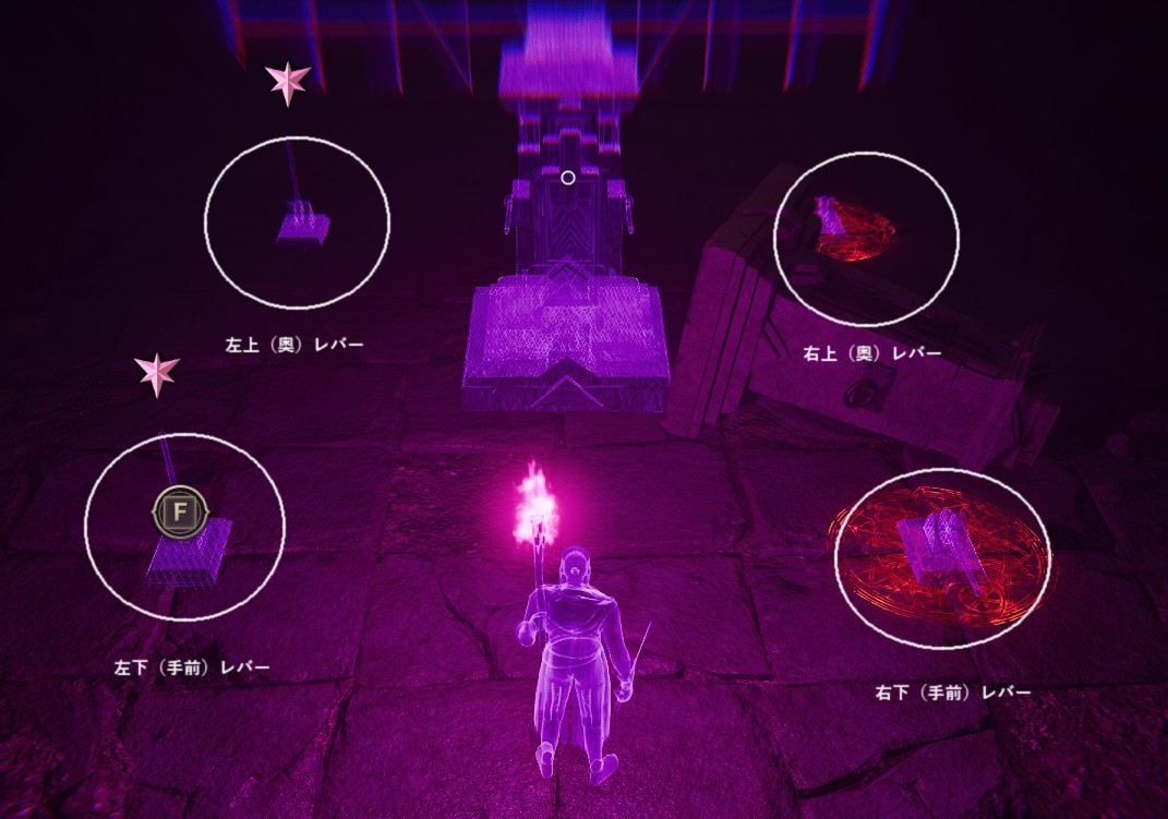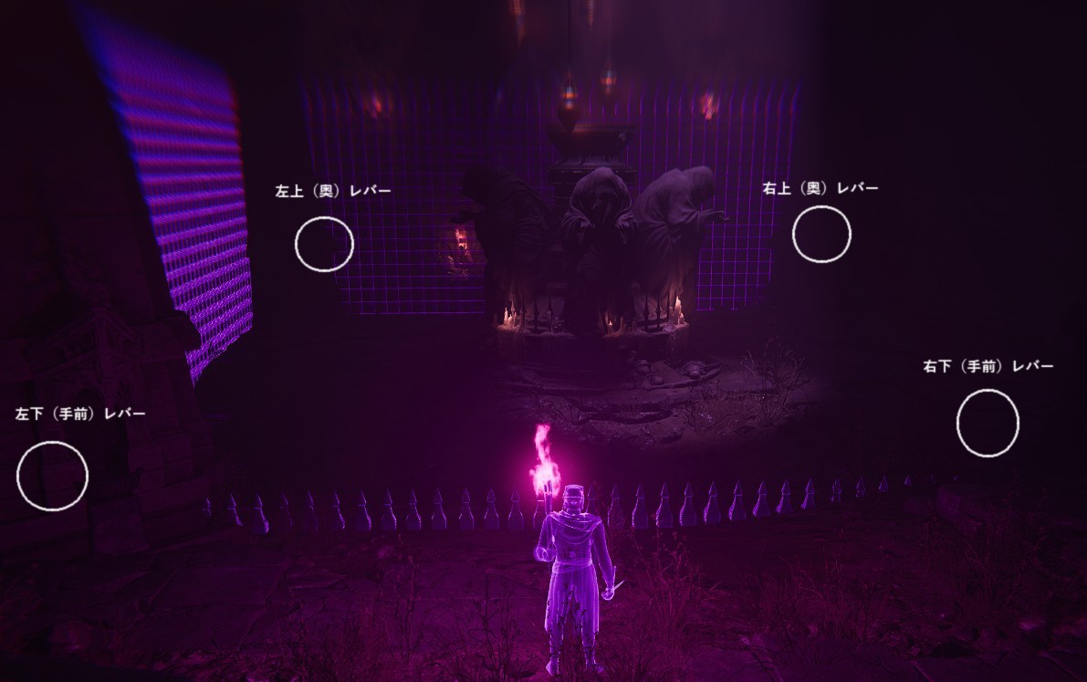 ・上記の床のレバーと同じように四方の壁側にレバーがあり、アーキウム魔術師は奥側を徘徊しています